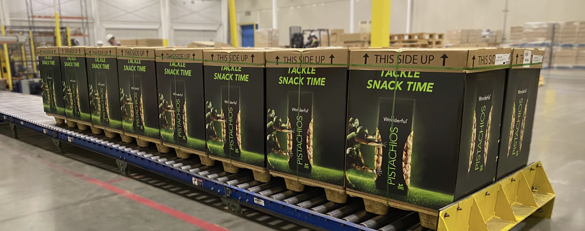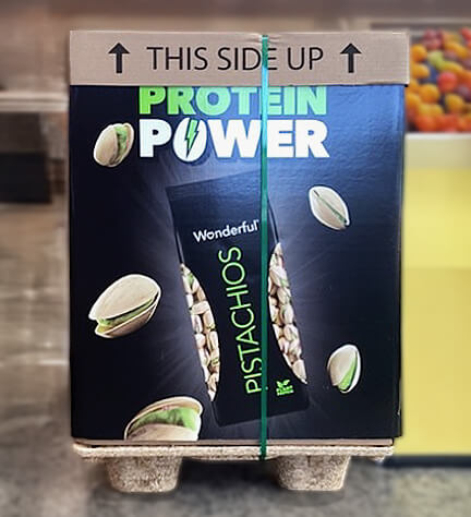 Wonderful® Pistachios was experiencing frequent damage to its seasonal point of purchase displays due to unreliable recycled wood pallets. Pallet failures during transit led to broken displays, disrupted retail setups, scratched store floors, safety concerns for employees, and compensation claims from retailers — creating risk across the supply chain.