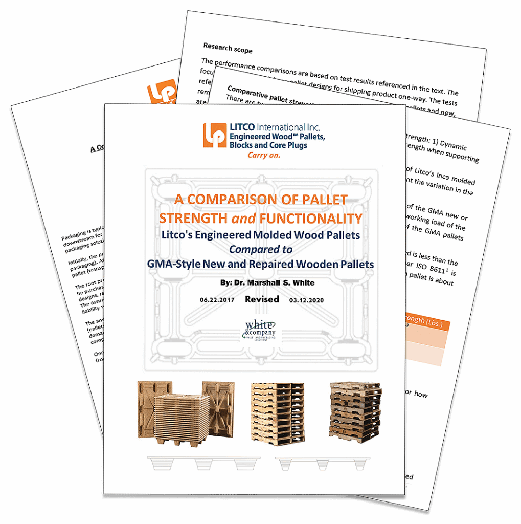 While the recycled wood pallets broke after one or two impacts, Litco’s pressed wood pallets consistently withstood five to seven hits before showing signs of wear. These findings affirmed independent testing by Virginia Tech, which showed that Litco pallets are stronger, more durable, and twice as stiff as new and repaired wood pallets